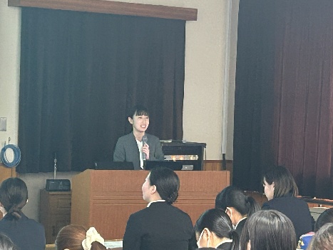 4年生の「保育?教職実践演習」と3年生の「小学校教育実習指導」の合同授業として、長崎純心大学卒業生の初任者教員による講話授業を行いました。