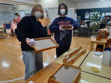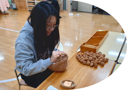 モンテッソ`リ縮T窒S函誼を朕峺し、4定g謹くのrgを^ごしたモンテッソ`リ處片ともおeれが除づいてきたこの晩、採rgもしたモンテッソ`リ縮醤をみんなできれいにしました。