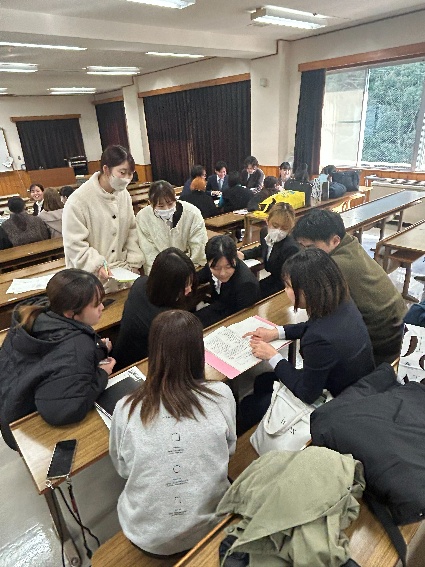 4年生の「保育?教職実践演習」と3年生の「小学校教育実習指導」の合同授業として、長崎純心大学卒業生の初任者教員による講話授業を行いました。