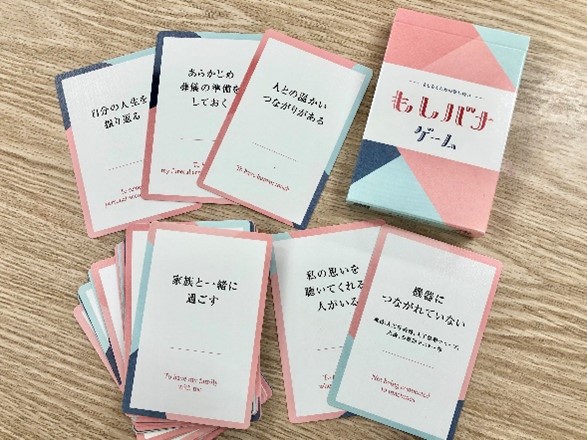 - 今回、もしバナゲームを通して自分の知らなかった自分の死生観について気づくことができた。自分は結婚はしたくないと思っていましたが、いざ、このもしバナゲームをしてみると、「最後は一人で迎えたくない」「自分の価値観の代弁者がいる」など愛している人の存在を欲していたのだと気づき、これからの自分の人生設計を見直すきっかけとなりました。また、自分ではこのカードはいらないと思っていたカードでも、他の人にとっては大切なカードだったので、他人との価値観の違いに触れることができました。このことを頭に入れ、これからの支援につなげていきたいです。