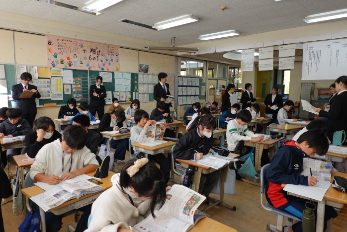 3年後期に開講している「社会科教育の研究」は、小学校社会科の授業づくりについて深く学ぶ講義です。今回は、学校現場で実際に行われている授業を参観させていただくことができました。