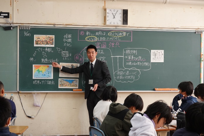 授業者は、長崎市立山里小学校の山口大樹先生です。山口先生は、長崎市教育研究会社会科部会でも先日授業を公開したばかりです。6年生の子供たちの充実した学びを参観することができました。
