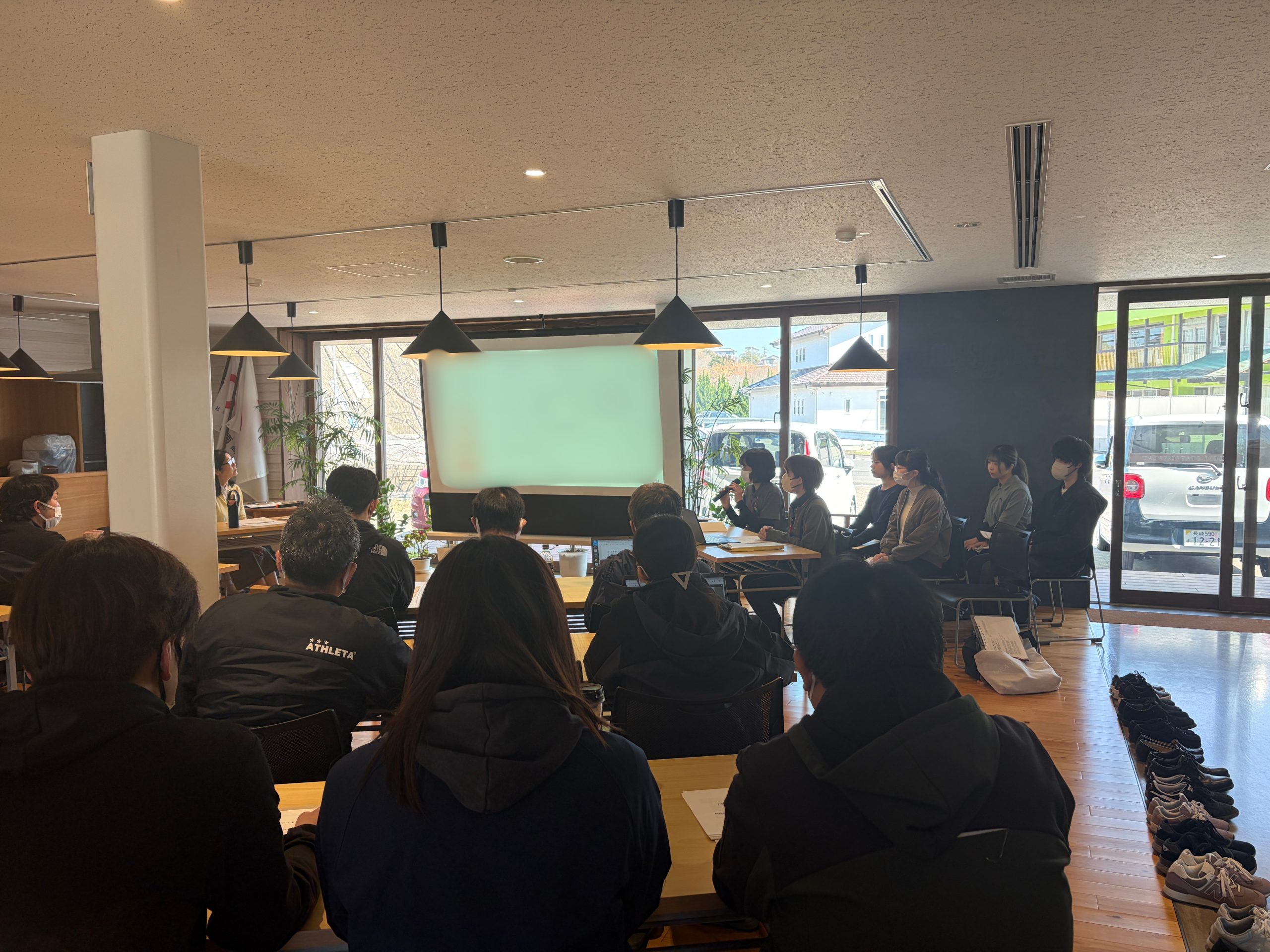 2026年3月11日に社会福祉法人南高愛隣会利用者サービス評価調査報告会が南高愛隣会Local Station Flatにて行われ、本学大学院生1名、福祉?心理学科の学生3名、本学教員1名が参加しました。